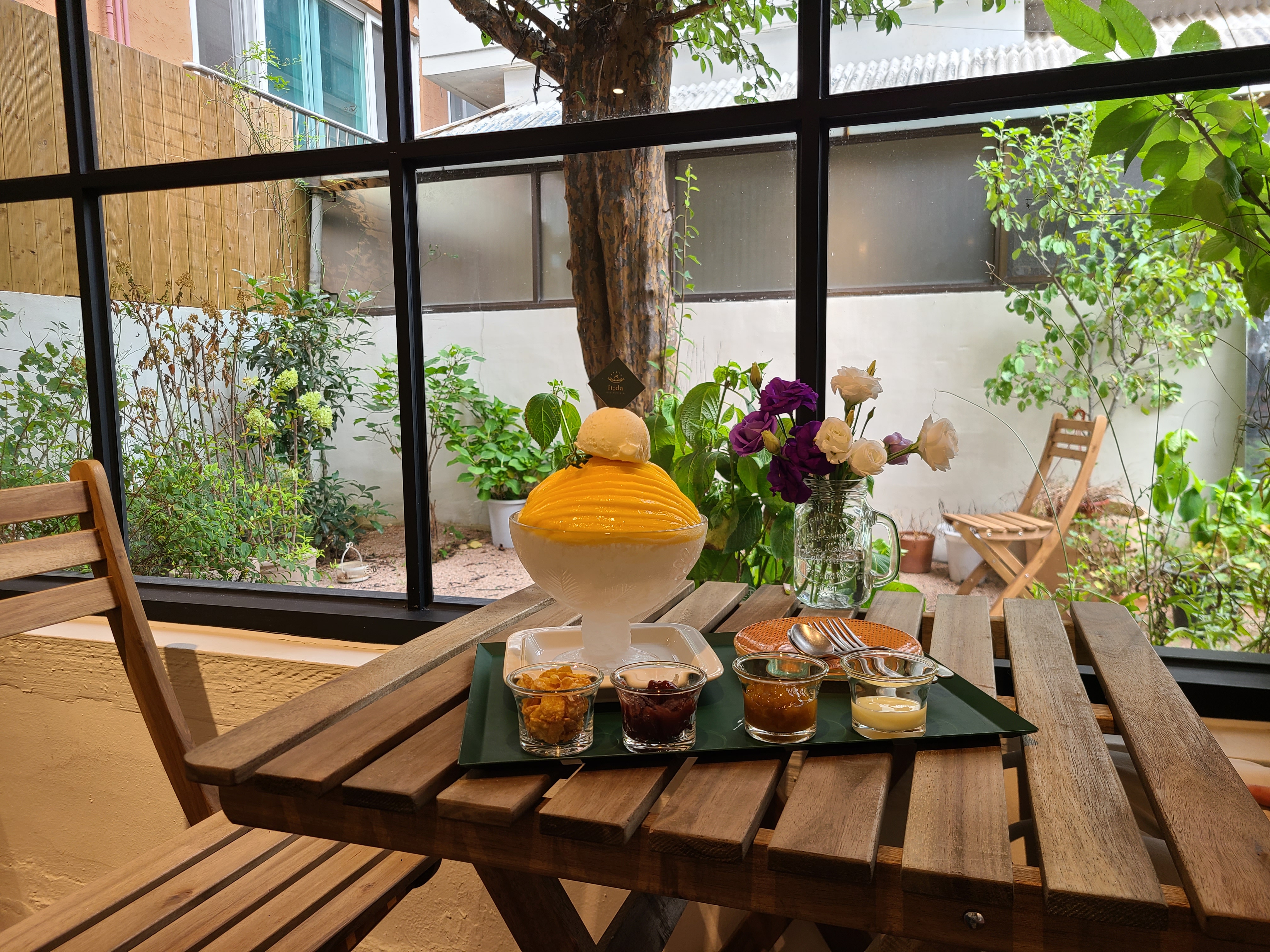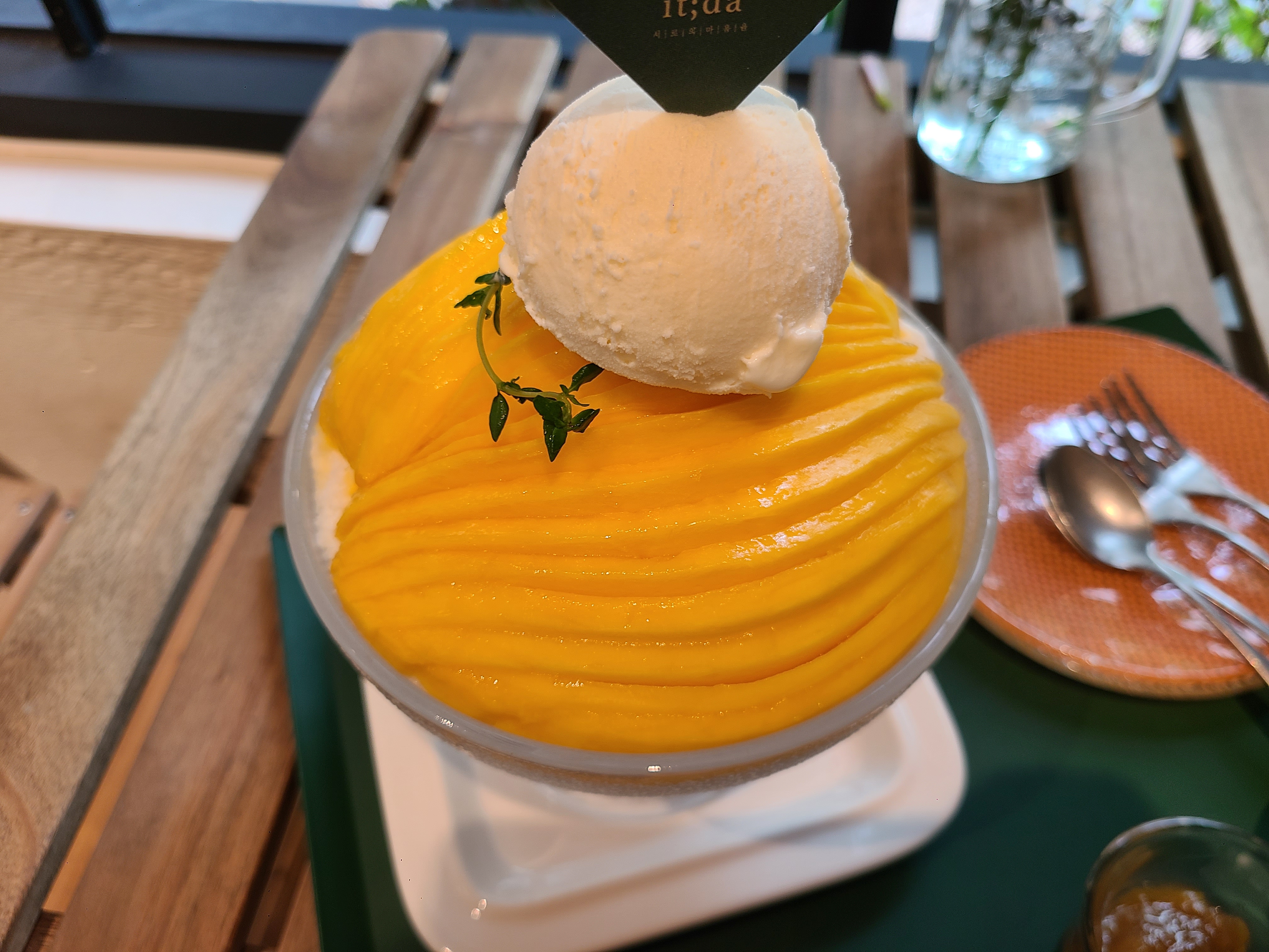 시그니처 메뉴인 망고빙수를 주문했습니다.