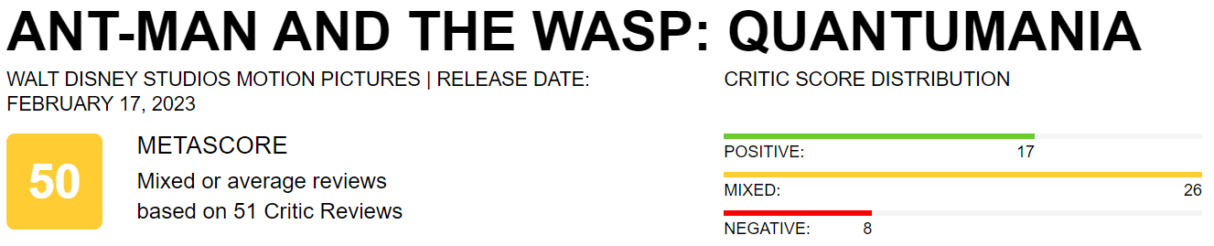 메타크리틱 점수는 100점 만점 중에 50점을 받았습니다.